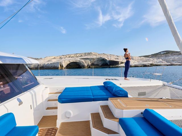 Ob Sie den Nervenkitzel des Segelns oder die Glückseligkeit des Entspannens auf luxuriösen Lounges und Sonnenliegen suchen, Aphaea bietet die perfekte Umgebung zum Entspannen und Erholen. Mit viel Platz auf der Flybridge und dem Vorderdeck finden Sie zahlreiche Möglichkeiten, die Sonne zu genießen und die Aussicht zu bewundern.