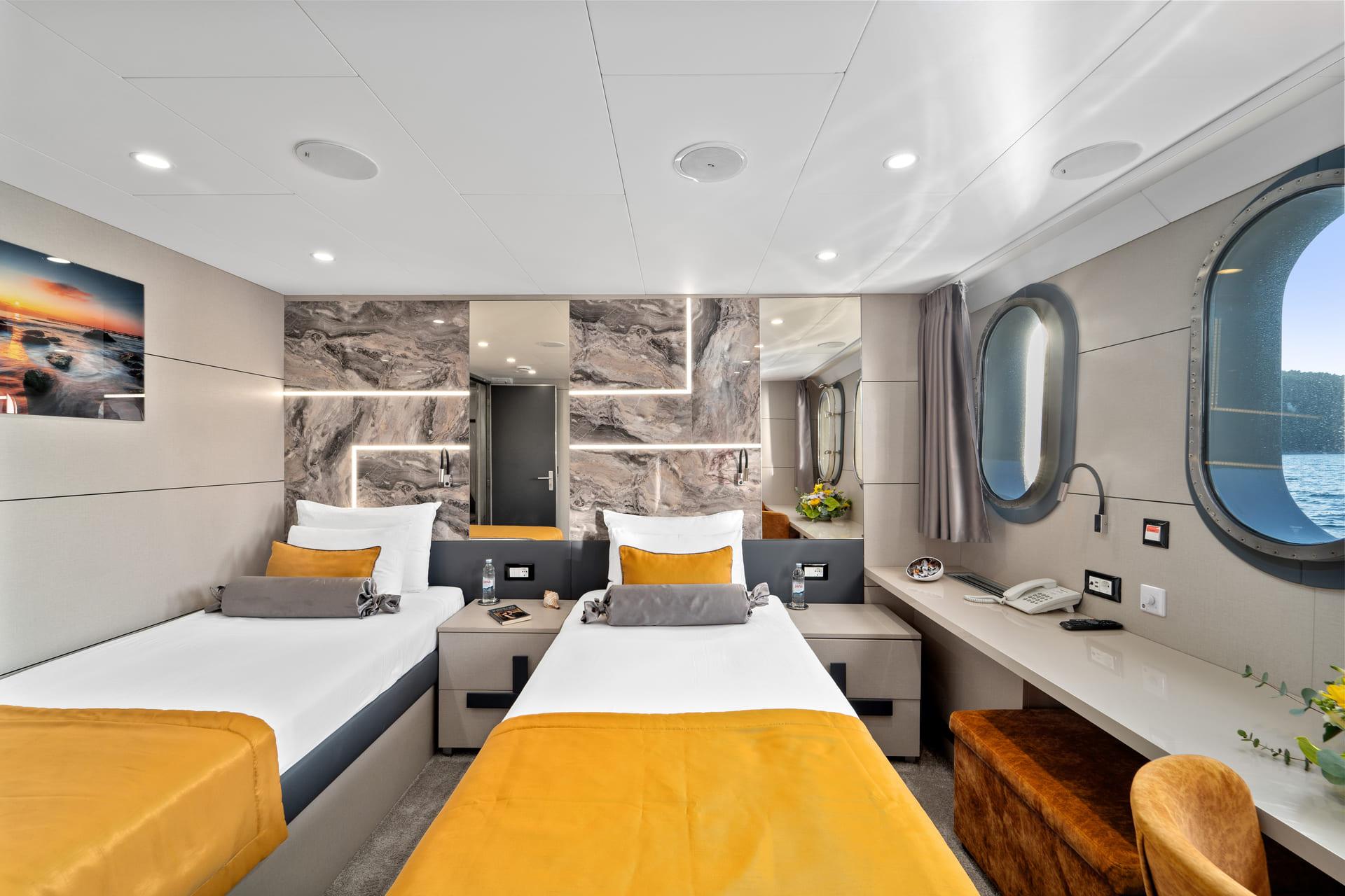 VIP-Kabine: Die auf dem Hauptdeck gelegene VIP-Kabine bietet einen luxuriösen Rückzugsort mit einem bequemen Doppelbett. Sie ist für Gäste gedacht, die eine Mischung aus Luxus und Exklusivität suchen, und sorgt dafür, dass jede Nacht erholsam ist und jeder Morgen mit Eleganz beginnt.