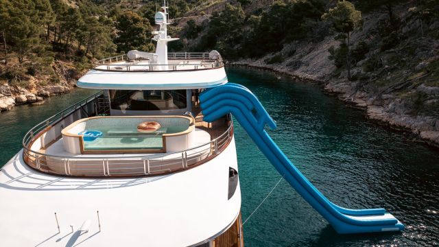 Im Inneren bietet die Yacht ein hochmodernes Kino, einen Videospielraum, ein voll ausgestattetes Fitnessstudio und eine luxuriöse Sauna. Für diejenigen, die Entspannung suchen, bieten das Beauty-Spa und der Massageraum die perfekte Zuflucht. Und für die Abenteuerlustigen unter uns ist die Freedom mit einer ganzen Reihe von Wasserspielzeugen ausgestattet, darunter eine aufregende Wasserrutsche.