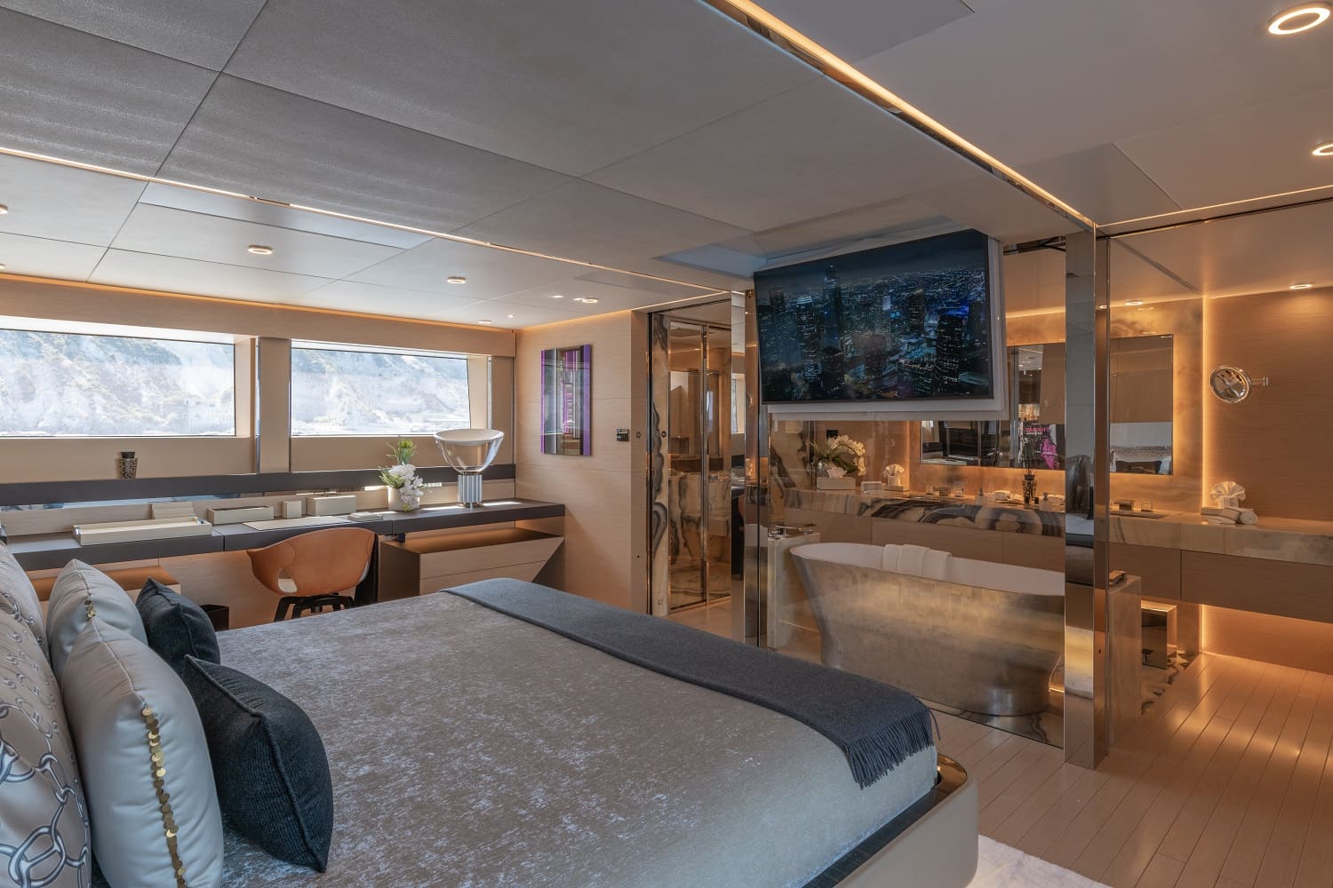 Das Innere von LEL ist ein Meisterwerk an zeitlosem, aber modernem Design. Das opulente Dekor und die Liebe zum Detail schaffen eine Atmosphäre von unvergleichlichem Luxus. Jeder Winkel dieser Yacht strahlt Raffinesse aus, so dass Sie sich im Schoß der Extravaganz wie zu Hause fühlen.
