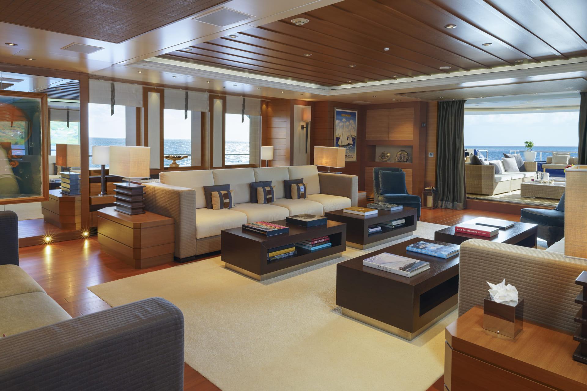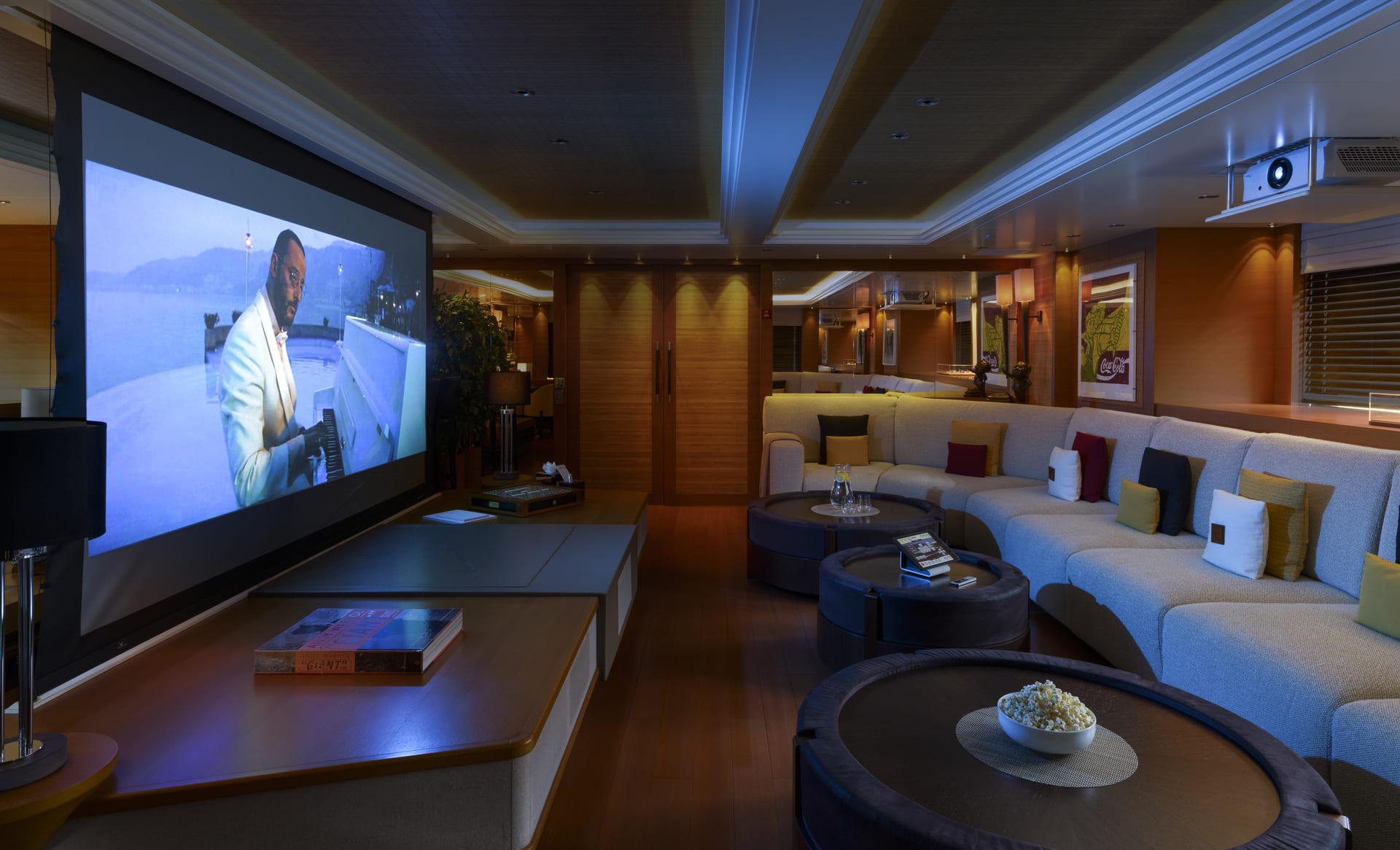Die Außendecks sind ein Paradies für Entspannung: Ein Jacuzzi, eine Bar, Sonnenliegen und Schattenbereiche auf dem Sonnendeck schaffen ideale Orte zum Relaxen oder Feiern. Alfresco-Dining auf mehreren Decks rundet das Erlebnis ab. Ein modernes Fitnessstudio mit Peloton-Bike, Rudergerät, TechnoGym-Gewichten und Yoga-Equipment sorgt für Wohlbefinden. Für Entertainment stehen ein 4,4 m² Kinobildschirm, Apple TV, Sat-TV und iPad-gesteuerte Systeme bereit.