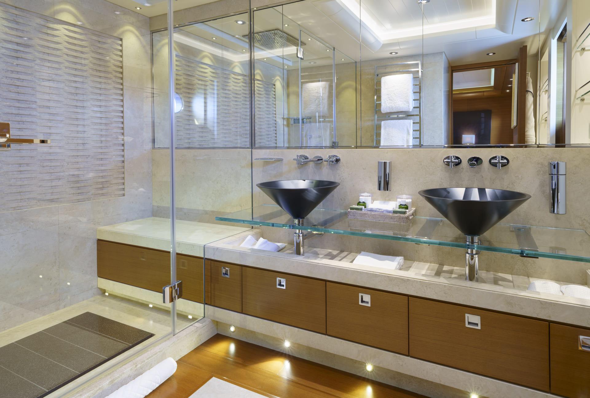 Bis zu 12 Gäste genießen höchsten Komfort in sieben luxuriösen Kabinen. Die Owner’s Suite auf dem Hauptdeck bietet ein privates Refugium mit Lounge und Ensuite-Bad. Eine VIP-Suite auf dem Oberdeck beeindruckt mit Panoramablick, während ein weiteres Doppelzimmer auf dem Hauptdeck und vier flexible Kabinen auf dem Unterdeck für Vielseitigkeit sorgen.