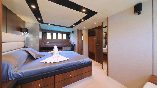 Schatzi can welcome up to 8 guests in 4 marvellous cabins, with a full-beam master suite fit for royalty that includes a walk-in dresser and king size berth.